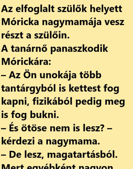 VICC: Az elfoglalt szülők helyett Móricka nagymamája vesz részt a szülőin