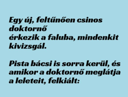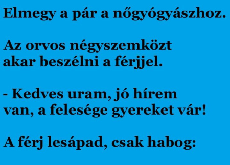 Elmegy a pár a nőgyógyászhoz. Az orvos négyszemközt akar beszélni a férjjel