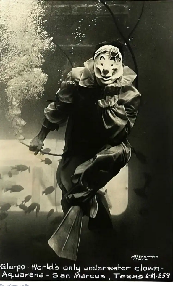 A kép az 1960-as évek környékén készült a texasi San Marcosban (USA) található Aquarena Springs vidámparkban, ahol Glurpo fellépett.