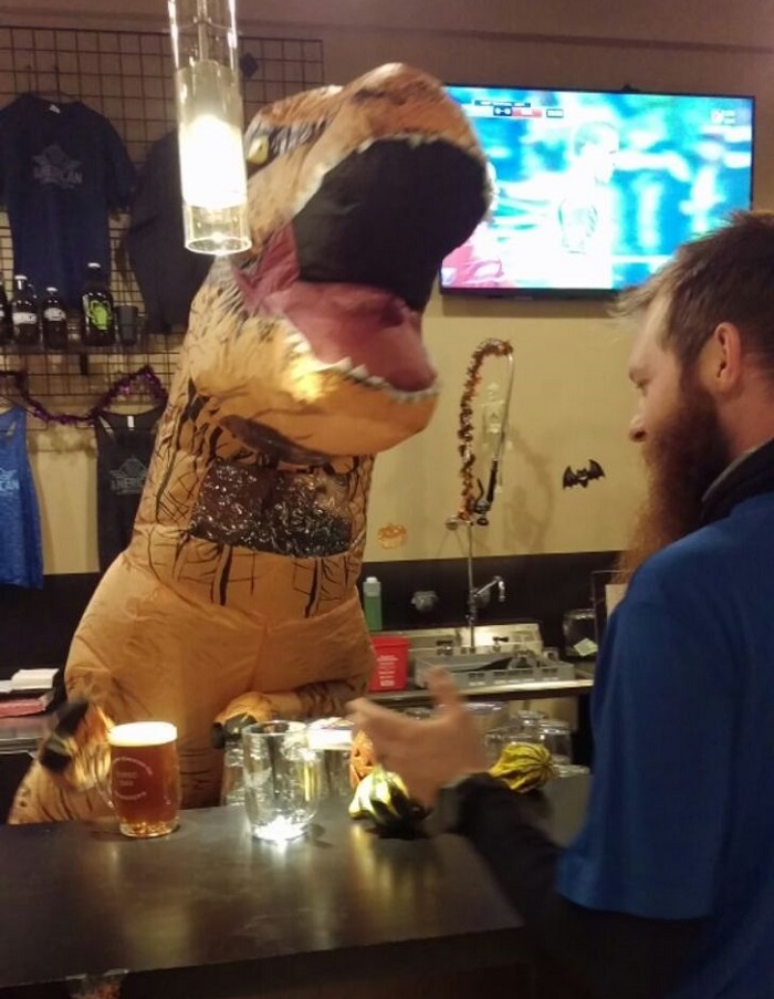 4. A kedvenc helyemen egyik este a pultos hölgy T-Rexnek öltözve szolgálta ki a vendégeket.