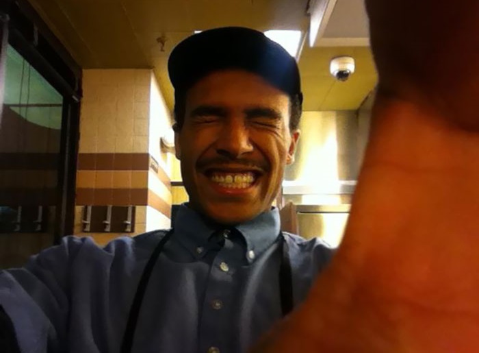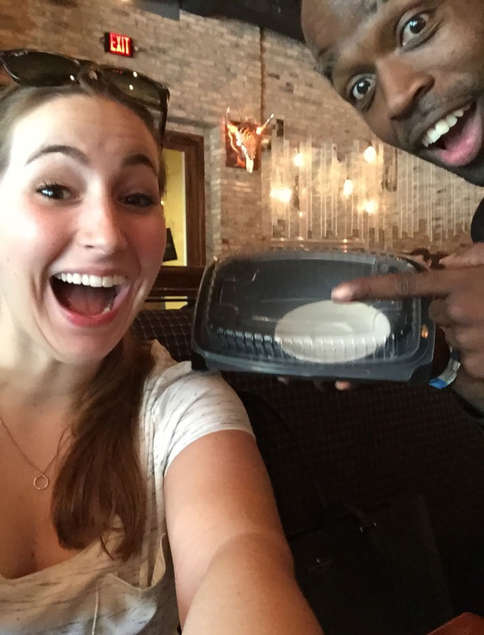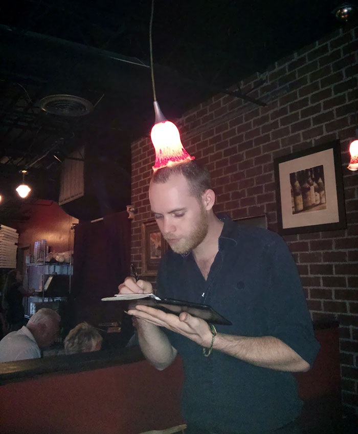 10. A feleségemmel megkértük a pincért, hogy készítsen rólunk egy fotót. Azt mondta, hogy csinál többet is, és ezért mindenféle instrukciókat adott, hogy mikor, hogyan pózoljunk. Amikor visszaadta a telefonomat, ezt az egy képet találtuk benne.