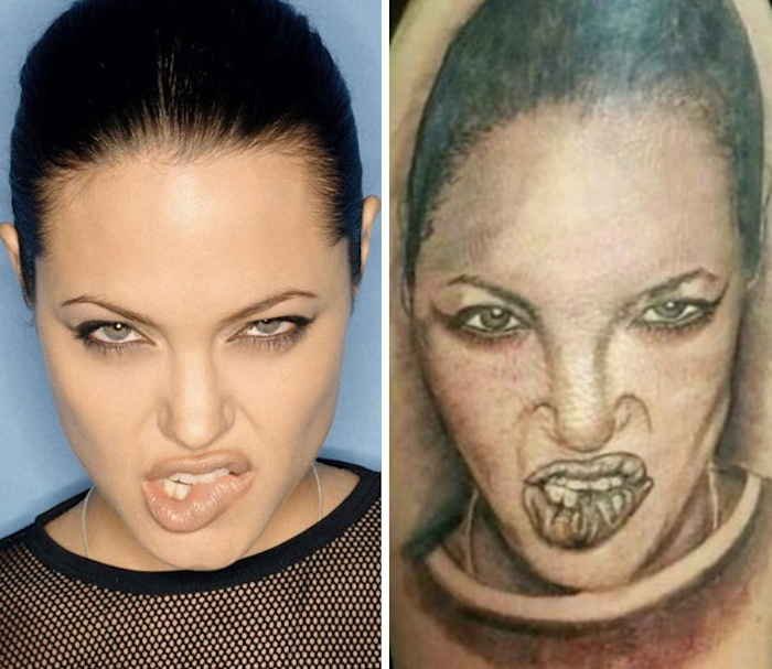 3. Már a mintául szolgáló Angelina Jolie fotó sem túl előnyös választás, de az elkészült tetoválásnak azt is sikerült alulmúlnia.