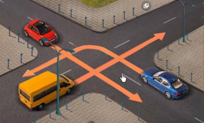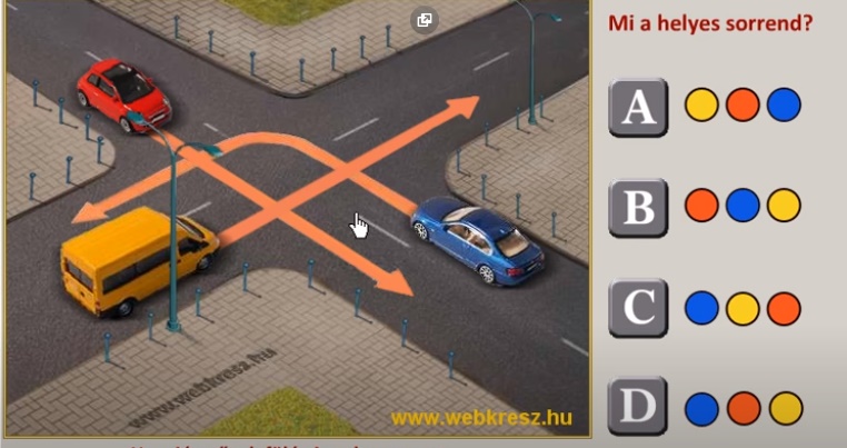 Cikkünkben most mutatunk egy remek példafeladatot, amivel megvizsgálhatod a tudásod a témában. Az a lényeg, hogy eldöntsd, a három autó közül melyik indulhat el elsőnek a kereszteződésben.